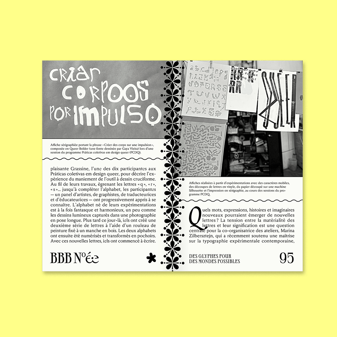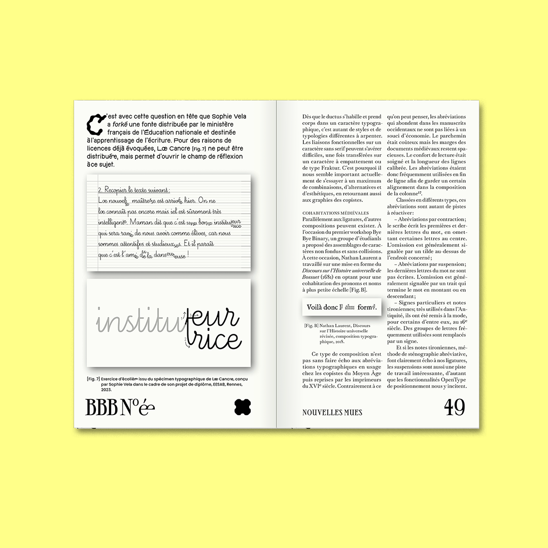 • les membres de BBB se réapproprient collectivement le texte « Imaginaires typographiques inclusifs, queer et non-binaires », publié en 2021. Iels y mettent à jour l'avancée de leurs recherches et font l'état des lieux de la place de l'écriture inclusive en France et en Belgique;