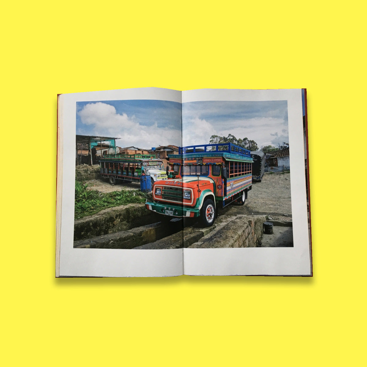 Chivas - Les bus psychédéliques de Colombie - "Chivas" signifie "chèvres". Ce mot désigne des bus qui circulent en Colombie dans les zones rurales reculées des Andes. Ils servent à transporter les gens et les récoltes (café, bananes, avocats...) vers les petites villes. Les moteurs viennent de camions importés des Etats-Unis, ensuite les chassis sont élaborés artisanalement dans des ateliers pour permettre aux véhicules de circuler sur les pires pistes du pays. Ceux des régions de Caldas et Antioquia ont la particularité d'être couverts de peintures psychédéliques. Cette tradition singulière est née dans les années 50/60 alors qu'un jeune peintre en lettre de Medellín, junkie sur les bords, se voit proposer par un chauffeur de décorer son bus. Simultanément, la découverte du bouddhisme et d'un livre de géométrie intuitive vont amener le jeune Alejandro Serna à développer un style unique et improbable qu'un petit nombre de peintres continue de perpétuer aujourd'hui. Ce livre et le documentaire vidéo qui l'accompagne sont un condensé des ambiances et des œuvres que nous avons découvertes au gré de nos déplacements dans ces bus au cours des cinq dernières années.