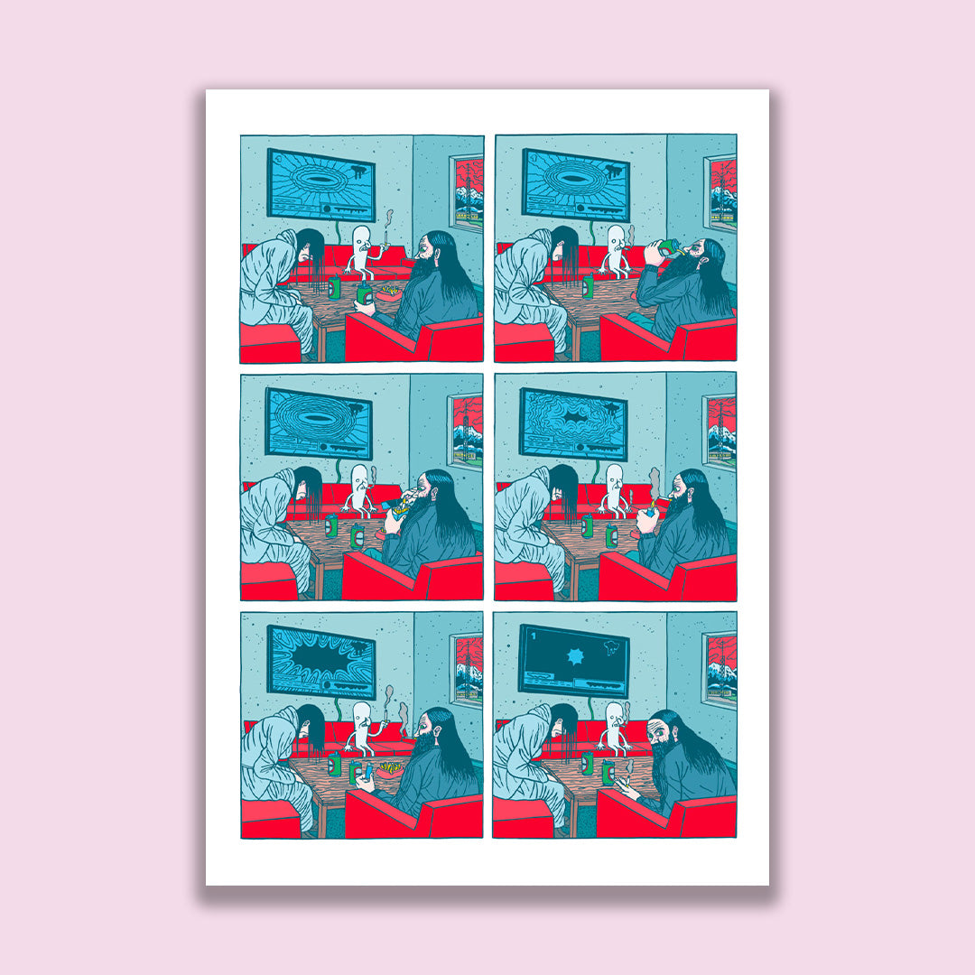 extrême ou la folie la plus intense. Dans un gaufrier strict de six cases et