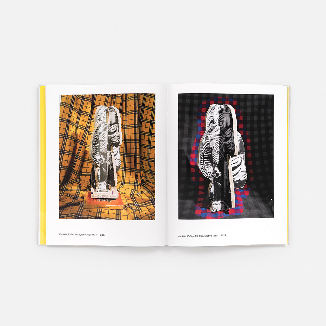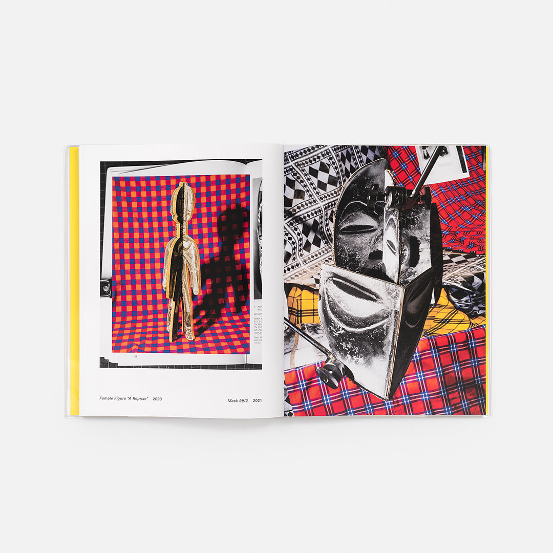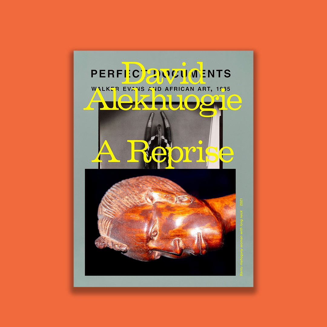 A Reprise, David Alekhuogie’s first monograph, confronts the intriguing legacy of narrative and authorship behind Western presentations of African art, and poses timely questions about how Black aesthetics are circulated, accessed, valued, and interpreted today. In 1935, Walker Evans was commissioned by the Museum of Modern Art, New York, to photograph hundreds of African sculptures for the exhibition African Negro Art. Nearly ninety years later, Alekhuogie began investigating Evans’s images, provocatively remixing them into his own vibrant and multilayered photographic collages. Transposing facsimiles of Evans’s original images onto cardboard or paper structures of his own making, Alekhuogie rephotographs these image-sculptures against striking backdrops—often using East and West African textiles—thereby inviting multiple dimensions of viewership. Alekhuogie’s images draw upon the musical idiom of the reprise—a performance of repetition—and stake a claim to crucial, restorative ideas around Black antiquity by questioning our relationship to what we consider fake or original, art or archive.