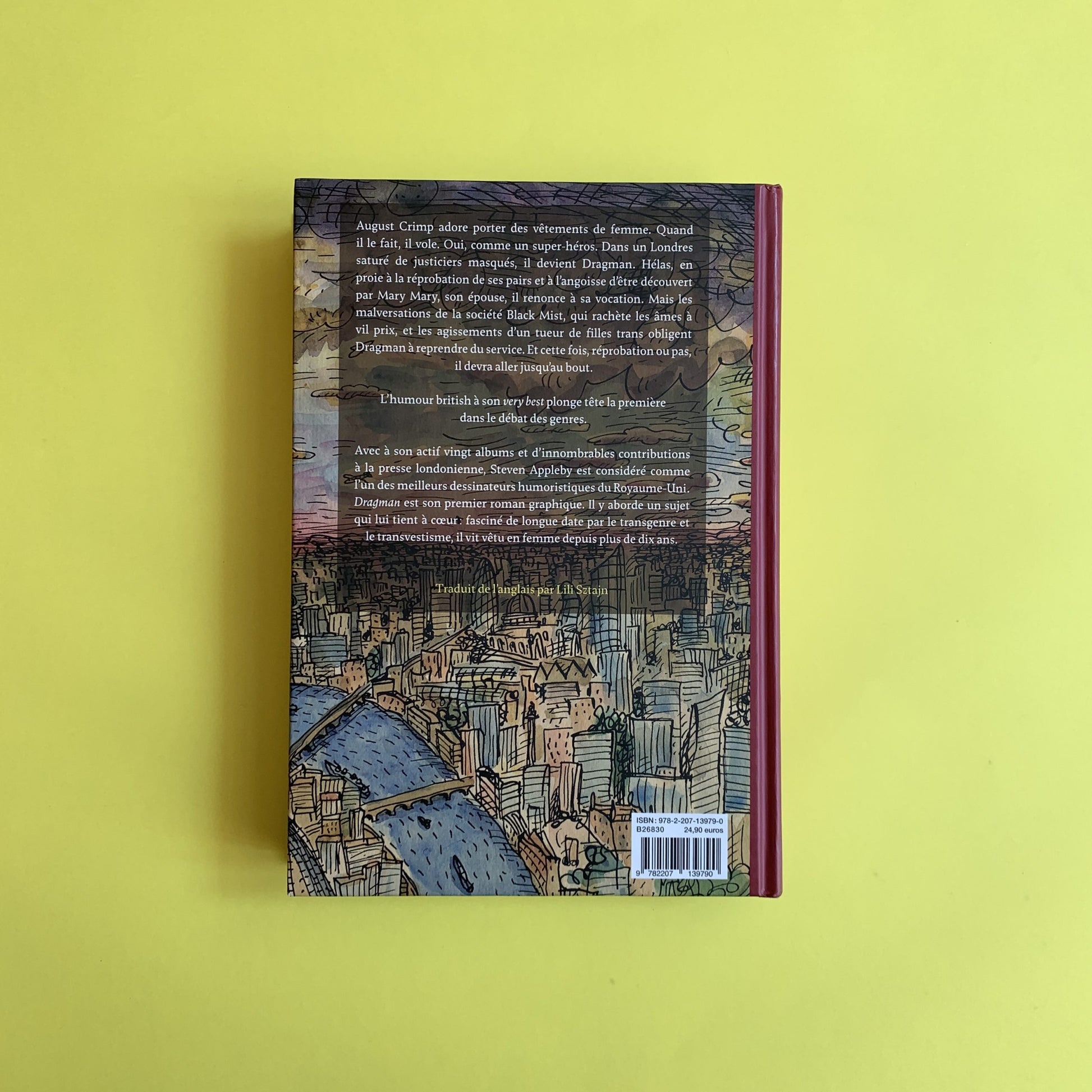 "Il n'y a pas de super-héros plus super que Dragman, le héros travesti de Steven Appleby. Appelé aussi Dolly Marie, il mène contre les voleurs d'âmes de Black Mist un combat apocalyptique, névrotique, tendre, drôle - et brillamment dessiné". Depuis qu'il a trouvé, adolescent, un bas de sa mère dans le sofa, August Crimp a découvert deux choses. La première est qu'il adore porter des vêtements de femme. La seconde est que lorsqu'il le fait, il devient capable de voler. Oui, comme un super-héros ! Hélas, cette passion un peu obsessionnelle est contrariée par la peur du ridicule et de la réprobation générale. Si sa mère, puis sa femme venaient à l'apprendre, c'en serait fait de lui. Du coup, il range sagement dans des cartons les tenues et souvenirs de Dragman, le nom de guerre qu'il s'était donné. De toute façon, la ville regorge de justiciers masqués. Mais voici que Cherry Mingle, la petite fille qu'il a sauvée d'une terrible chute du toit du Musée d'Art moderne un jour qu'il s'y était rendu en Dragman, réapparait dans sa vie. Elle a encore besoin de lui, cette fois pour aider ses parents qui ont vendu leurs âmes à la mystérieuse compagnie Black Mist pour lui payer ses études. Dragman reprend donc du service et l'aventure (même si elle finit bien) ne sera pas de tout repos... Comment partager sa vie entre le rôle de bon père de famille et celui de super-héros quand tous vos pouvoirs tiennent au fait de vous travestir en femme ? Telle est la question. Le coming-out et la confession de cette passion très singulière produisent le roman graphique le plus étonnant, détonnant et délirant de l'année...