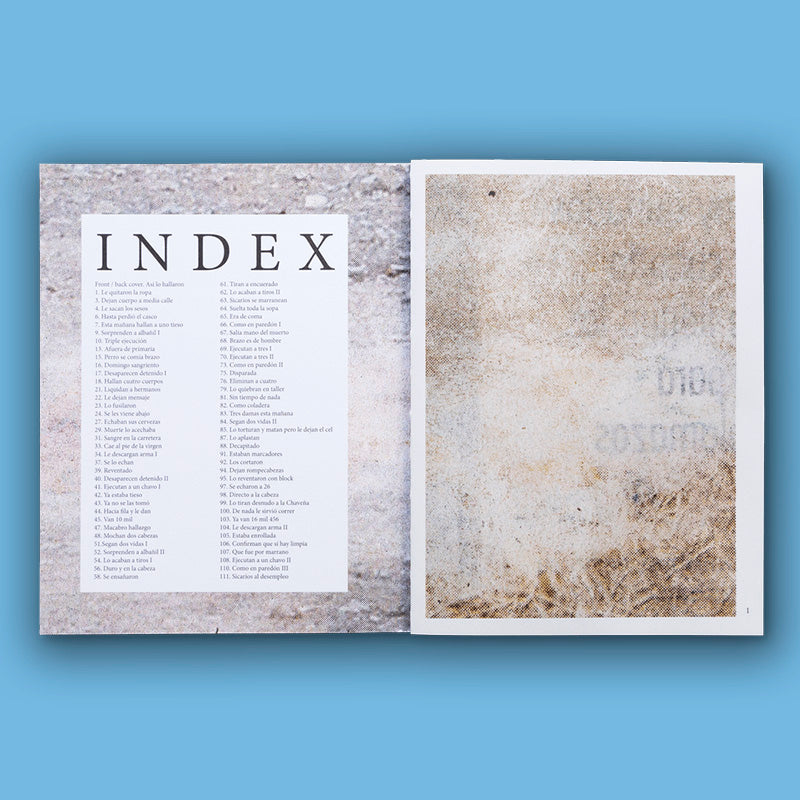 EL RETRATO DE TU AUSENCIA - Pendant six ans, Alejandro Morales a rassemblé plus de 500 photographies représentant des cadavres publiés dans son journal local P.M. à Ciudad Juárez, au Mexique. Cette période d'extrême violence a fait de Ciudad Juárez l'une des villes les plus violentes du monde, marquée par le grand nombre d'homicides volontaires commis dans ses rues. Les limites de ce que la presse pouvait publier étaient floues tant il était fréquent de se retrouver au milieu d'une fusillade ou de tomber sur un cadavre abandonné. Morales a supprimé tous les cadavres qu'il a trouvés sur les photographies du journal P.M. en les effaçant manuellement à l'aide d'une gomme à effacer.