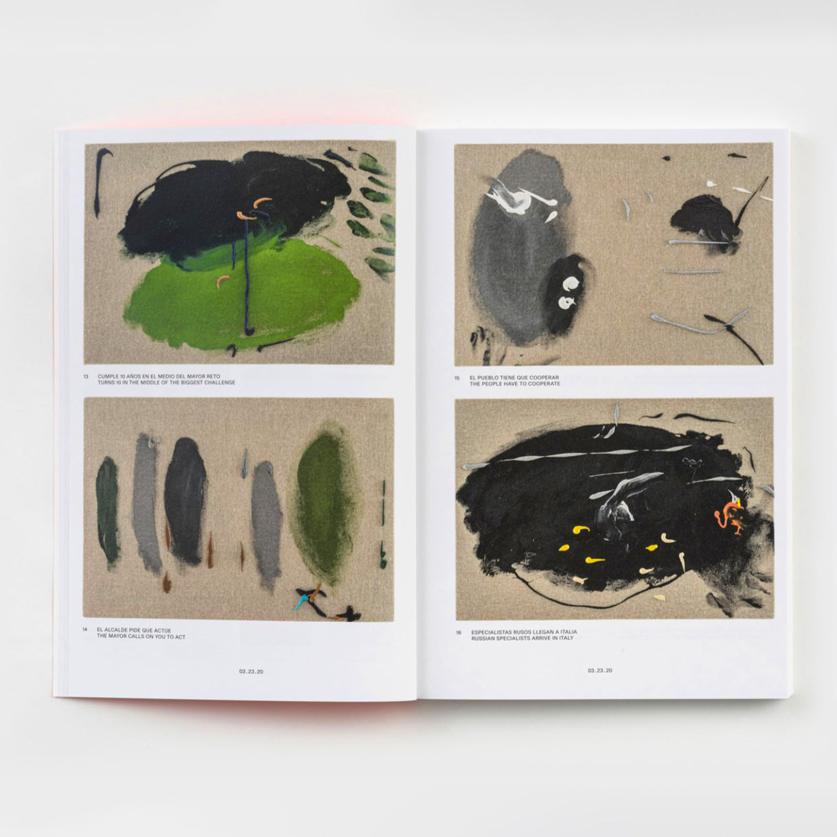 The series is comprised of paintings that are a result of a rigorous daily exercise entailing the artist’s close read of the national and international news. He then interprets the information (or misinformation) of that mornings’ media through painting, titling each with the headline that it is in response to. The process transforms the news into pictorial abstractions, whereby one representation of reality is translated into another.