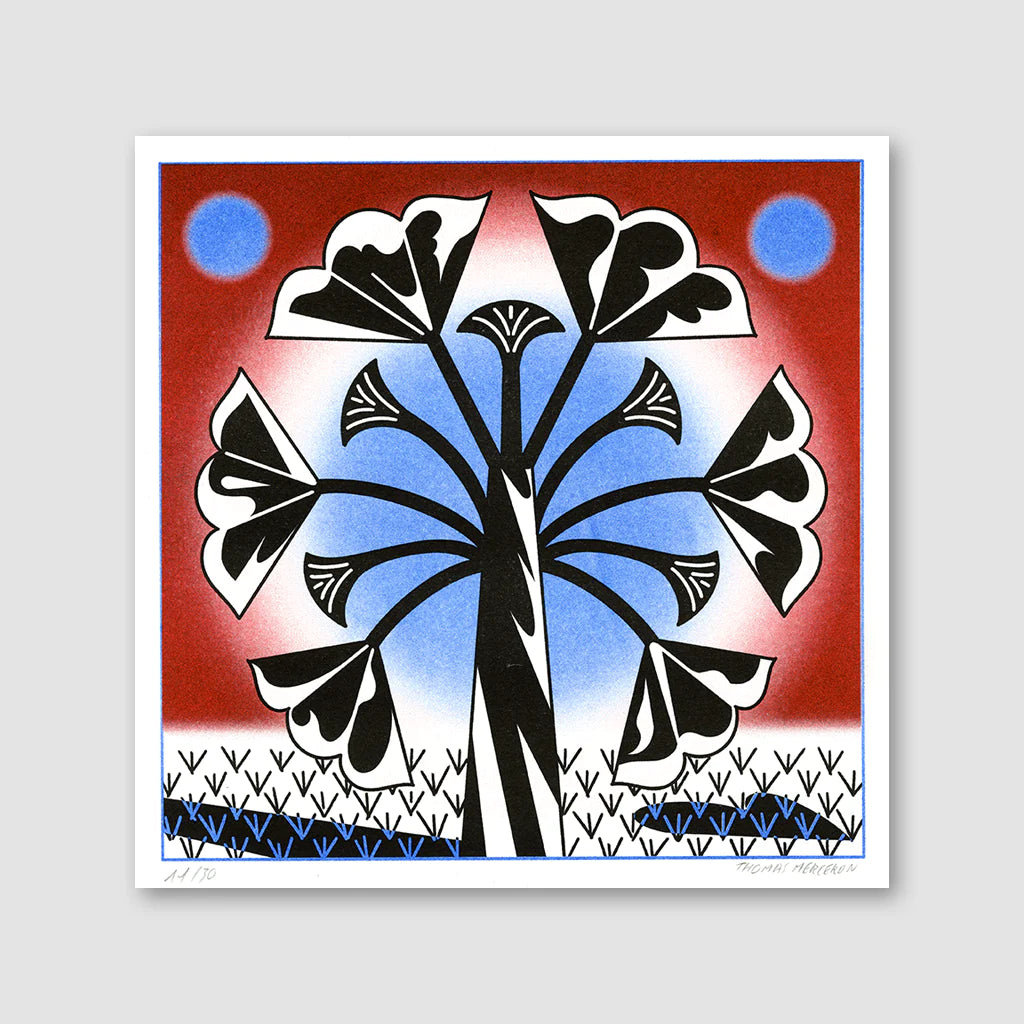 Fleur 4 - Impression en risographie 4 couleurs par Quintal Atelier sur papier Munken Pure Rough 300gr. Série limitée de 30 exemplaires numérotés et signés - Format 30x30cm