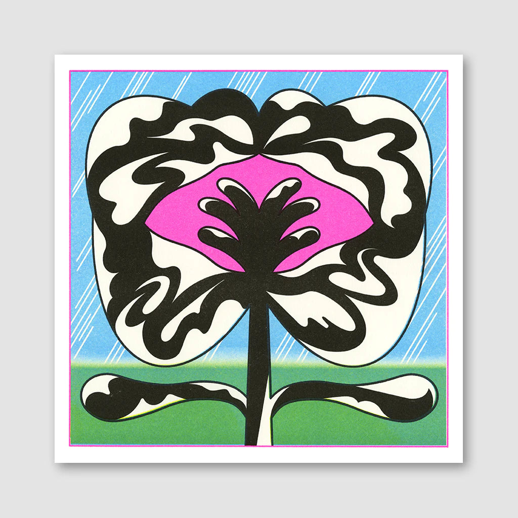 Fleur 7 - Impression en risographie 4 couleurs par Quintal Atelier sur papier Munken Pure Rough 300gr. Série limitée de 30 exemplaires numérotés et signés - Format 30x30cm