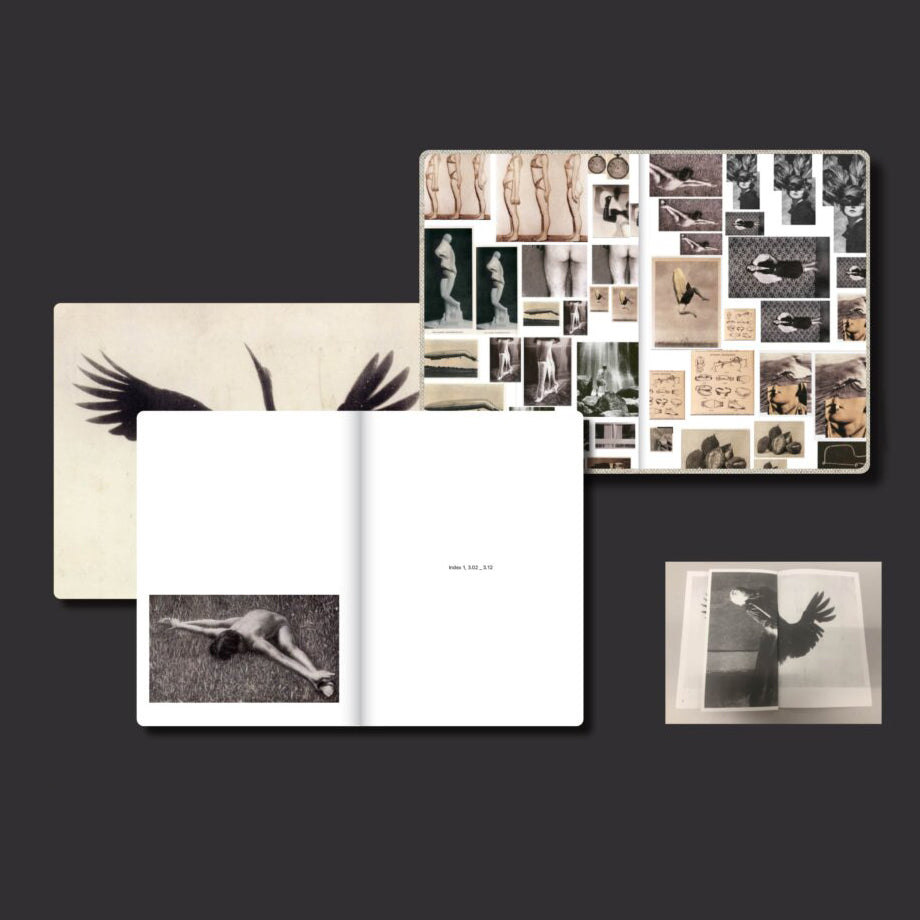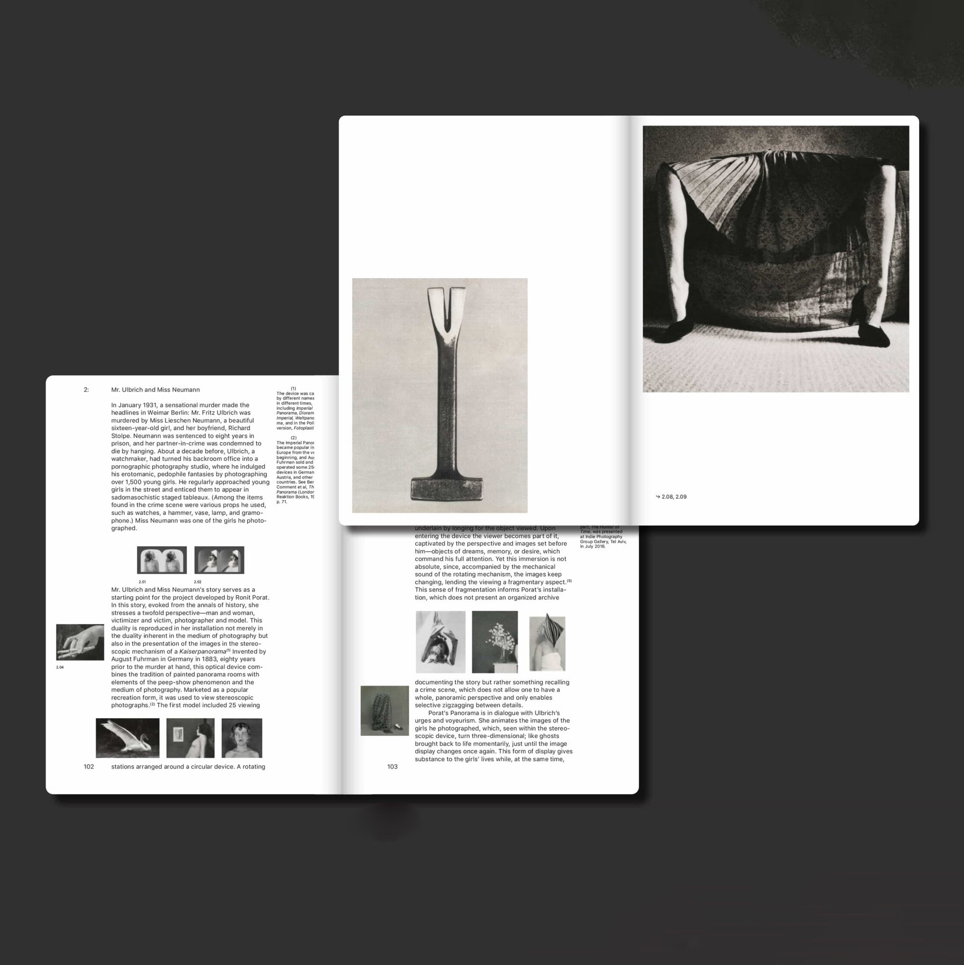 Hunting in Time est un livre d'artiste de Ronit Porat qui s'inspire d'une trilogie d'expositions sur un crime mystérieux commis à Berlin au début du siècle. La couverture rigide du livre, aux coins arrondis, fait référence à un carnet de notes. Dans son travail, Ronit Porat crée des archives, elle raconte des histoires historiques à l'aide de collages, en modifiant et en recontextualisant des images. Elle s'intéresse particulièrement à la période de Weimar à Berlin, en Allemagne, une période au cours de laquelle les rôles des hommes et des femmes sont devenus plus fluides, et une période que nous voyons actuellement avec l'ombre de son avenir. Les animaux, en particulier les oiseaux, sont un motif récurrent, faisant écho aux formes du corps humain et ajoutant une couche de mystère. En créant une distance entre le spectateur et les personnages, Porat respecte les multiples points de vue au sein de chaque histoire, ainsi que les différentes couches d'une histoire racontée plusieurs fois. Consciente du pouvoir du médium, son travail soulève une question fondamentale : à qui appartient une photographie - au photographe, au sujet, à l'archiviste ou au spectateur ?