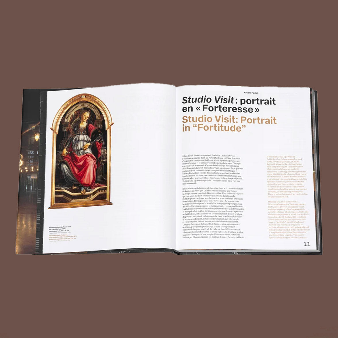 la designer acompagné d’un reportage photo dans l’atelier. Le graphisme est