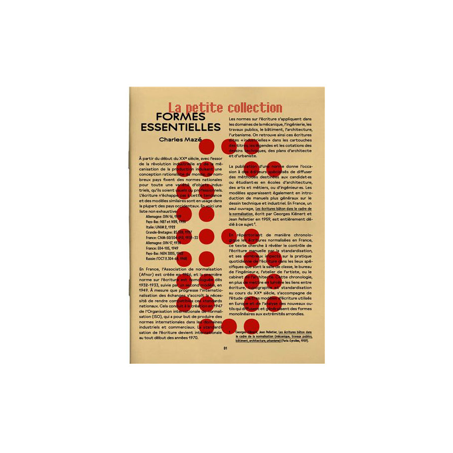 l’architecte. Imprimé en noir pour le texte et en rouge pour les images, l’essai