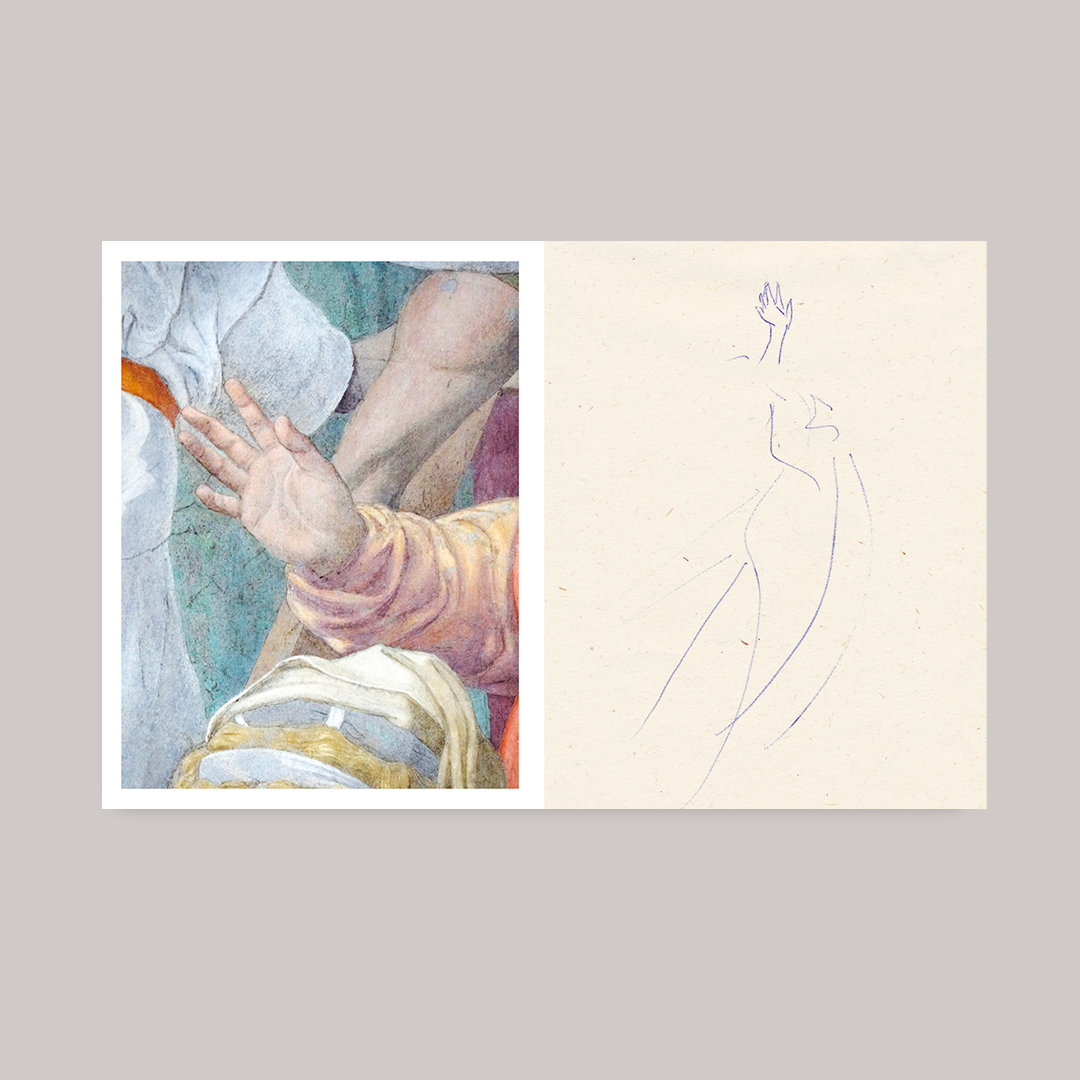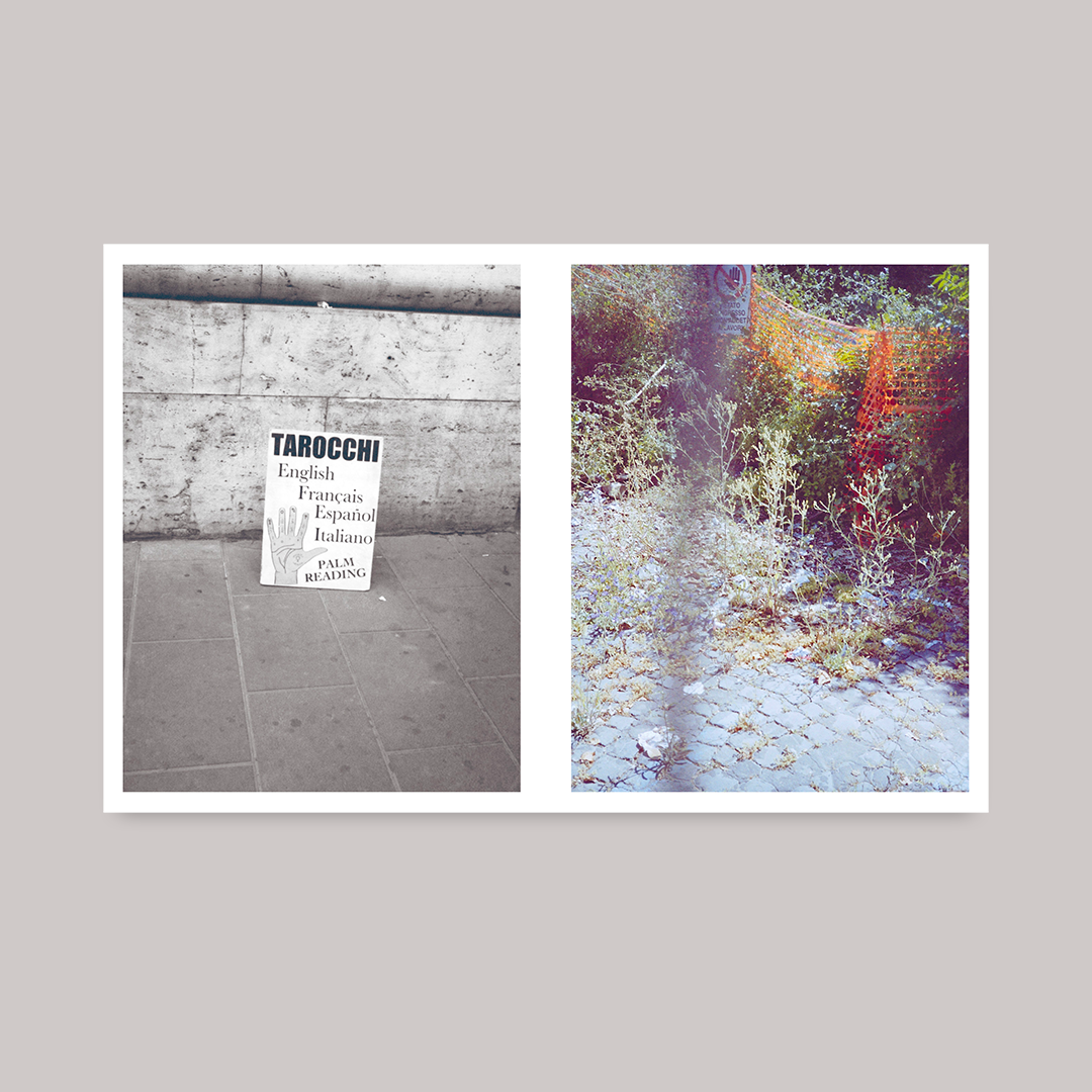 LAVORI IN CORSO signifie travaux en cours. Le titre fait référence à l’expérience de la déambulation dans les rues de Rome, ville toujours en reconstruction, ou le passé est imbriqué dans le présent. Mais ce titre évoque aussi une façon d’envisager le travail artistique, comme une recherche continue et modeste ou le doute remet toujours en jeu notre vision du réel. Ce livre est né suite à une résidence d’artiste à Rome au printemps 2018. C’est un livre composite, hybride, signé à deux. Sans aucun texte, le travail tire sa cohérence uniquement d’une logique visuelle. Les photographies font échos aux papiers et aux dessins esquissés sur le vif, réalisés sur des papiers trouvés dans la rue, ramassés à même le sol et qui portent les inscriptions ou les marques de la circulation des corps dans la ville, traces de pas, écriture, plans, usure, déchirures. Les images s’entrelacent pour donner forme à notre expérience du présent dans la ville éternelle.