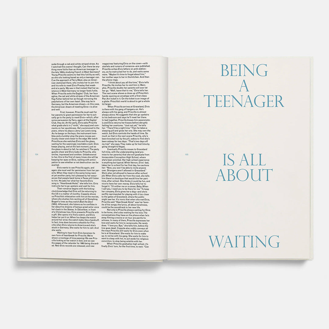 Book 015 in the A24 Screenplay Collection includes an introduction by Rashida Jones, an essay by Vendela Vida, on-set photography by Sofia Coppola, an excerpt from Elvis and Me by Priscilla Presley, and Polaroids by Sabrina Lantos.