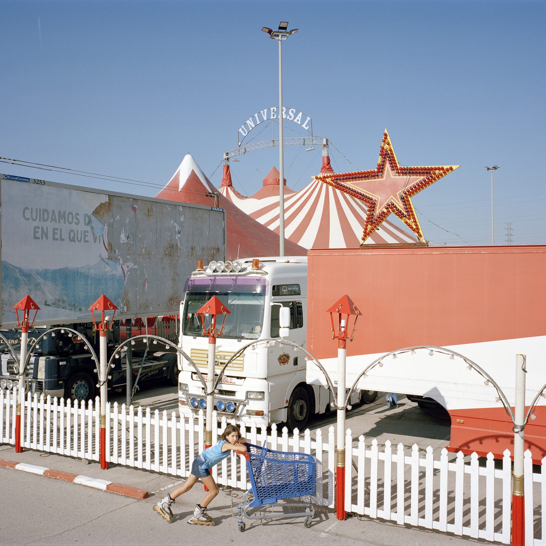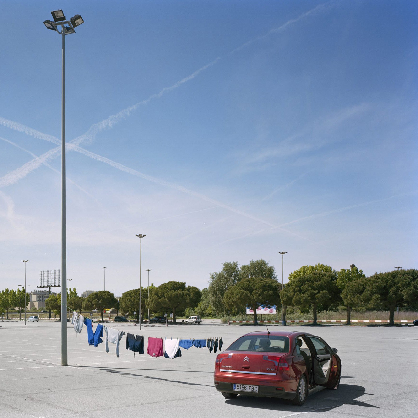 For ten years, every sunny Sunday at noon, Txema Salvans has photographed from the roof of his van the people who gather in the supermarket Carrefour car park on the outskirts of Barcelona. This unlikely leisure ground, both empty and absurd, hosts practical routines, quiet breaks, and a silent quest to suspend time. With patience and consistency, the photographer turns the banal into a visual symphony that reflects the margins of contemporary leisure, life on the urban periphery, and the hidden poetics of the everyday.
